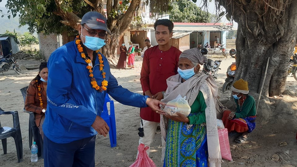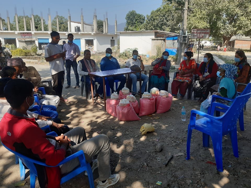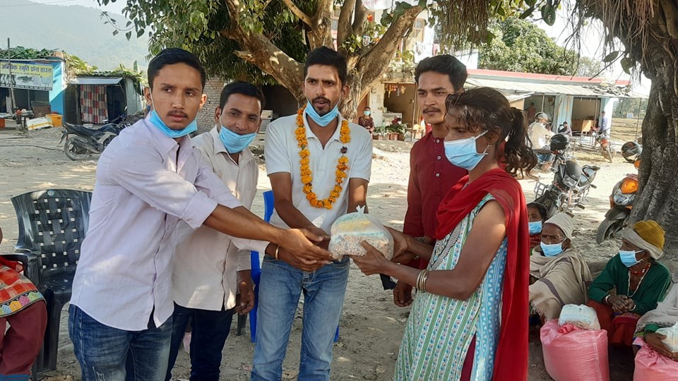 उनको अनुसार प्रतिपरिवार २० किलो चामल , दाल , नुन र तेल लगाएतका सामाग्रीहरु आज एक कार्यक्रमका बिच हस्तान्तरण गरिएको हो । देश तथा बिदेशमा रहेका बिभिन्न सहयोगी हातहरुवाट रकम संकलन गर्दै कोरोनाका कारण दैनिक गुजरा चलाउन पनि धौ धौ भैरहेको परिवारलाई थोरै भएपनि तिहारको मुखमा खाध्यान्न वितरण गर्ने कार्यक्रम अनुसार अभियान चलाएको उनले बताए ।