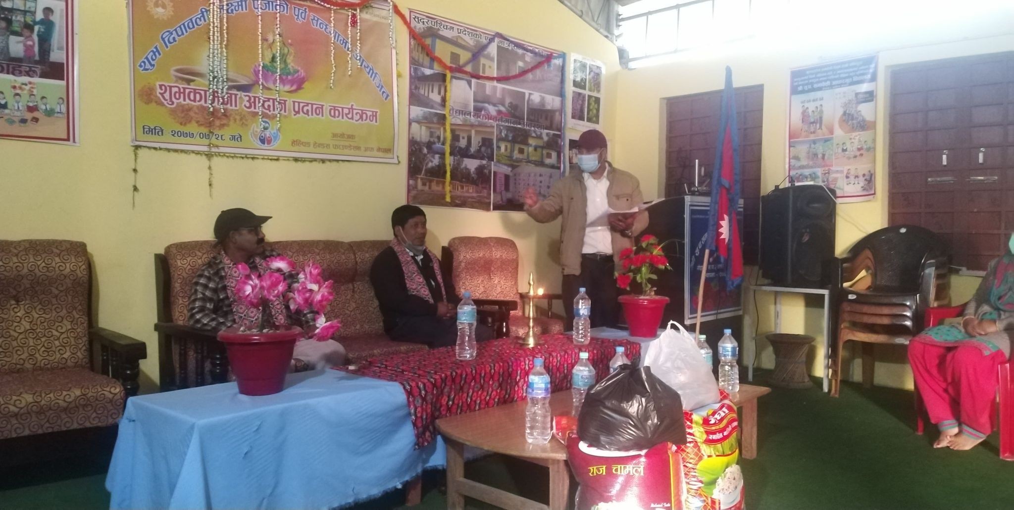 यस्तै गोदावरी २ मा रहेको प्रगति बचत तथा रिण सहकारी संस्थाका अध्यक्ष करुणाकर पाण्डेयले पनि जन्मदिनको अबसर पारेर अपाङ्गता भएका बालबालिकाहरुका लागि भनेर खाध्यान्न सहयोग गरेका छन् । उनले आजै बिधालयलाई चामल , दल , नुन , मसला लगाएतका समाग्रीहरु हस्तान्तरण गरेका हुन् ।