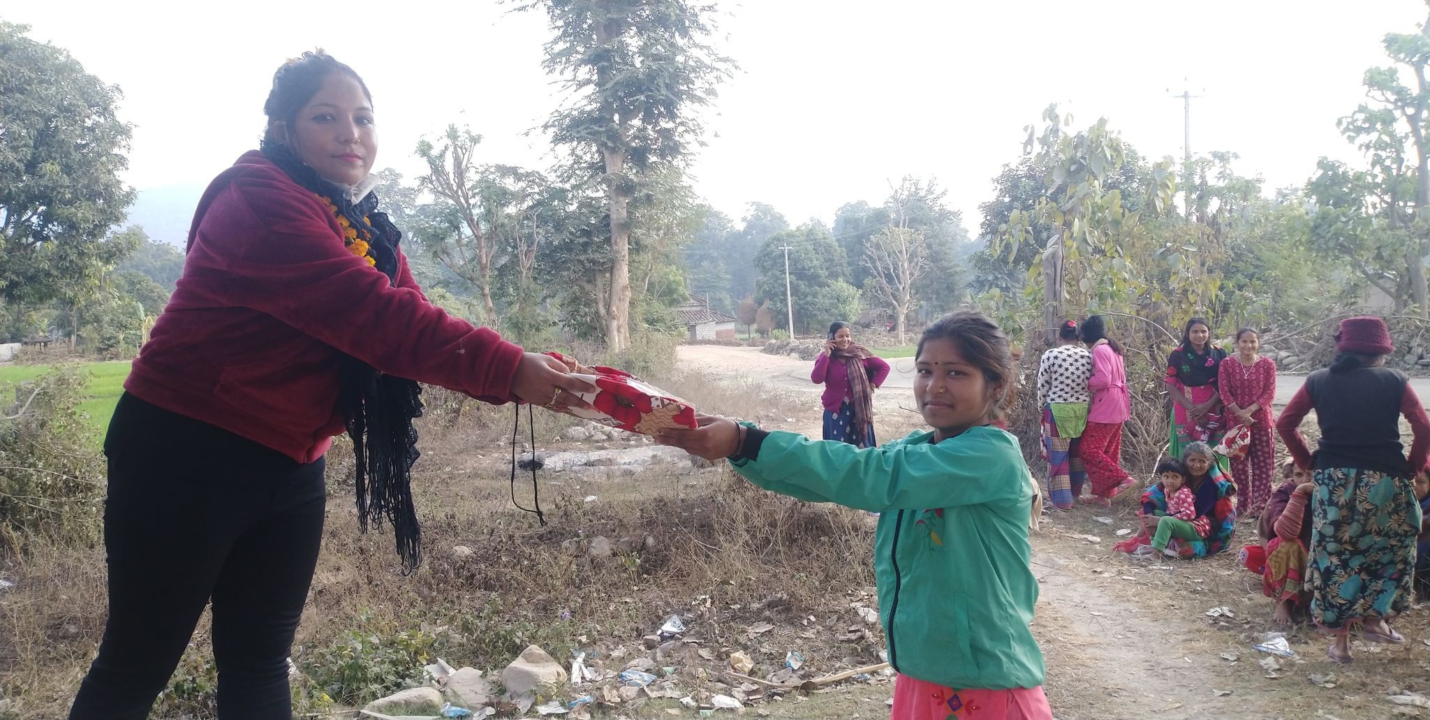 कार्यक्रममा सहभागी किशोरीहरुलाई डोटेरा हेलिङ हेन्डस्को सहयोगमा सेनेटरी प्याड पनि बितरण गरिएको थियो । कार्यक्रममा डोटेरा हेलिङ हेन्डस्का नेपाल प्रतिनिधि राजेश अधिकारीको पनि उपस्थिती रहेको थियो ।
