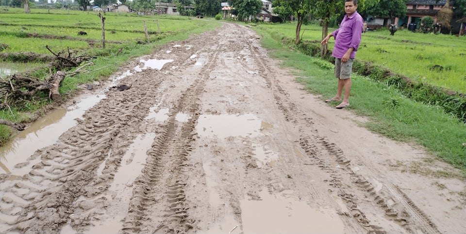 चालु आर्थिक वर्षमा नगरपालिकाले प्रधानमन्त्री स्वरोजगार कार्यक्रममार्फत सो सडकको दुवैतिर नाली निमार्ण गर्ने भन्यो , नालीलाई ब्यबस्थित तरिकाले खनेर लैजानुपर्ने हो , तर यहाँ त बिचमा नाली खनेर त्यो माटो सबै सडकमा हालियो नालीको माटो सडकमा थुपारेपछि अहिले पानी परेपछि हिलोले यो सडकमा हिड्न सकिदैन् उनले भने ।