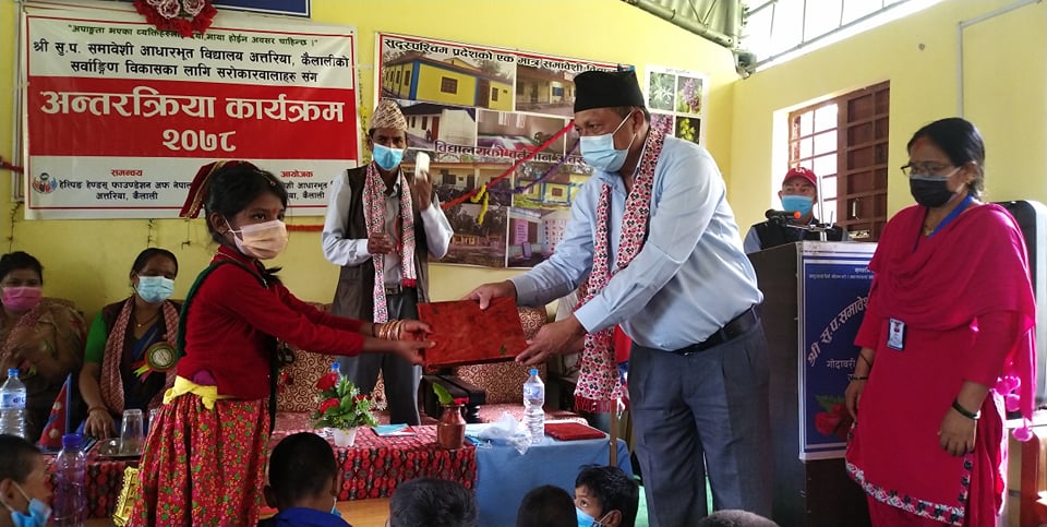 बिद्यालय व्यवस्थापन समितीका सदस्य तथा वडा नम्बर २ का वडाध्यक्ष कृष्णराज जोशीको सभापतित्वमा भएको अन्तरक्रिया कार्यक्रममा विधालयलाई स्थापनाकालदेखी सहयोग गर्दै आएका सहयोगीहरुलाई सम्मान पत्र सहित सम्मानित गरिएको थियो भने परीक्षामा राम्रो अंकका साथ प्रथम स्थान हासिल गर्ने बिधार्थीहरुलाई पुरस्कार वितरण गरिएको थिए ।