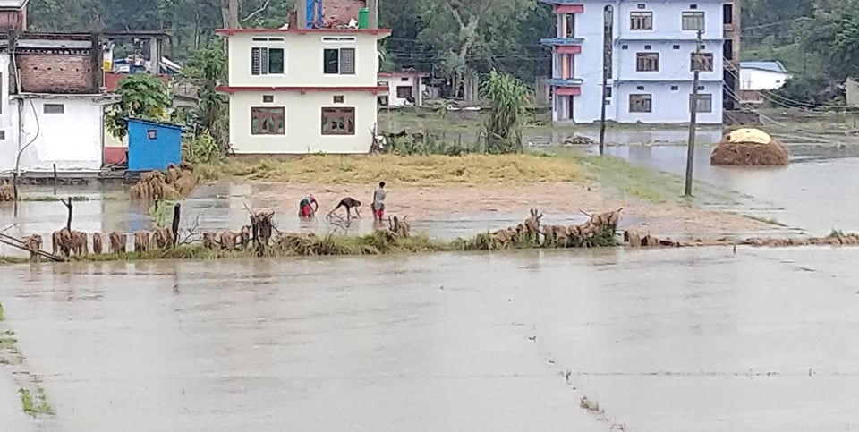 मानो रोपेर मुरी फलाउने आशामा असारको महिनामा घाम पानी नभनेर खेतमो रोपेको धानबाली भित्र्याउने समयमा आएर बाढीले बगाउन थालेपछि किसानहरुको मन रोइरहेको छ ।