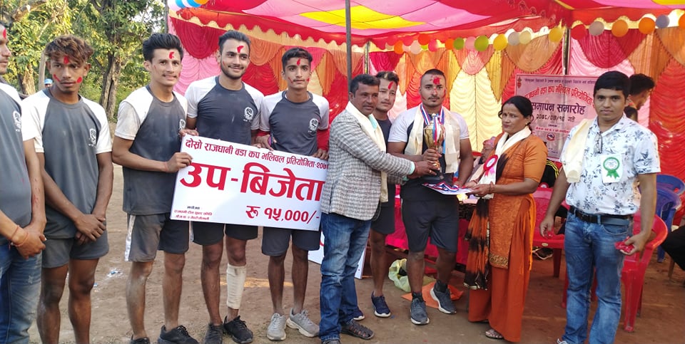 बिजेता टोलीहरुलाई कार्यक्रमका प्रमुख अतिथी गोदावरी २ का वडा अध्यक्ष कृष्णराज जोशीले नगद , ट्रफि र प्रमाण पत्र प्रदान गरेका थिए । नकाउट चरणमा भएको प्रतियोगिता राजधानी टोल सुधार समितिको तेघरी स्थित आफ्नै खेल मैदानमा खेलाइएको थियो ।