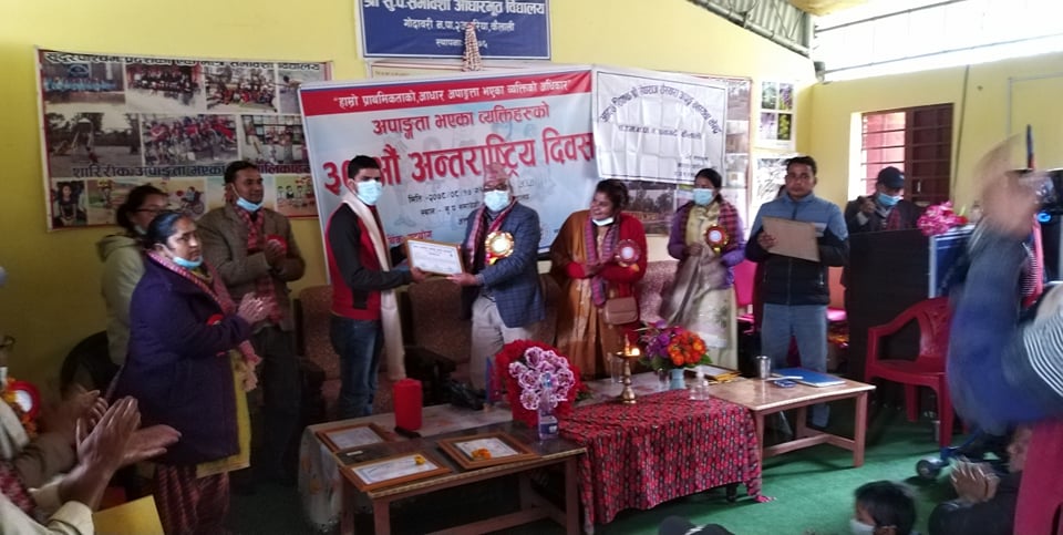 कार्यक्रममा अपाङ्गताको क्षेत्रमा कलम चलाउन २ जना पत्रकार सहित अन्य बिभिन्न ब्यक्तिहरुलाई दोसल्ला ओडाएर सम्मान गरिएको थियो । पत्रकारमा गोदावरी पत्रकार मञ्चका अध्यक्ष तथा गोदावरी एफ एमका सम्पादक हेमराज भट्ट रहेका छन् ।