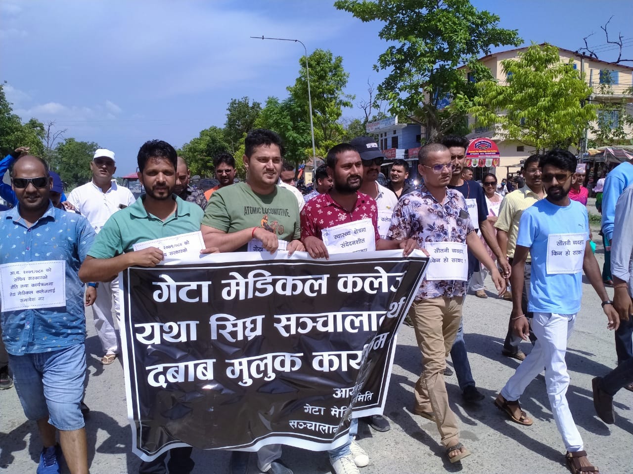 गेटा मेडिकल कलेज सन्चालनार्थ संघर्ष समितीको अगुवाई गर्दै 'आगो'..