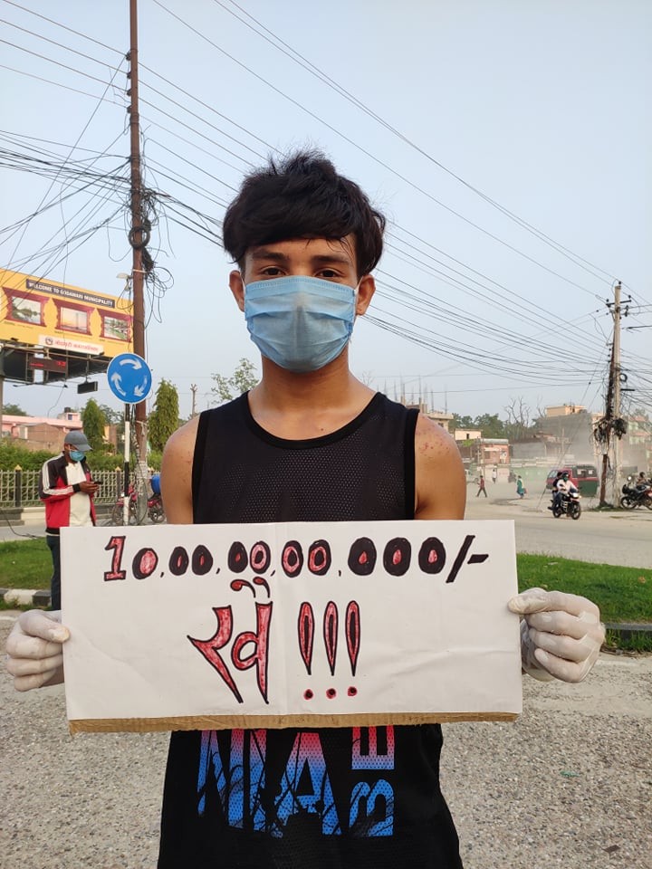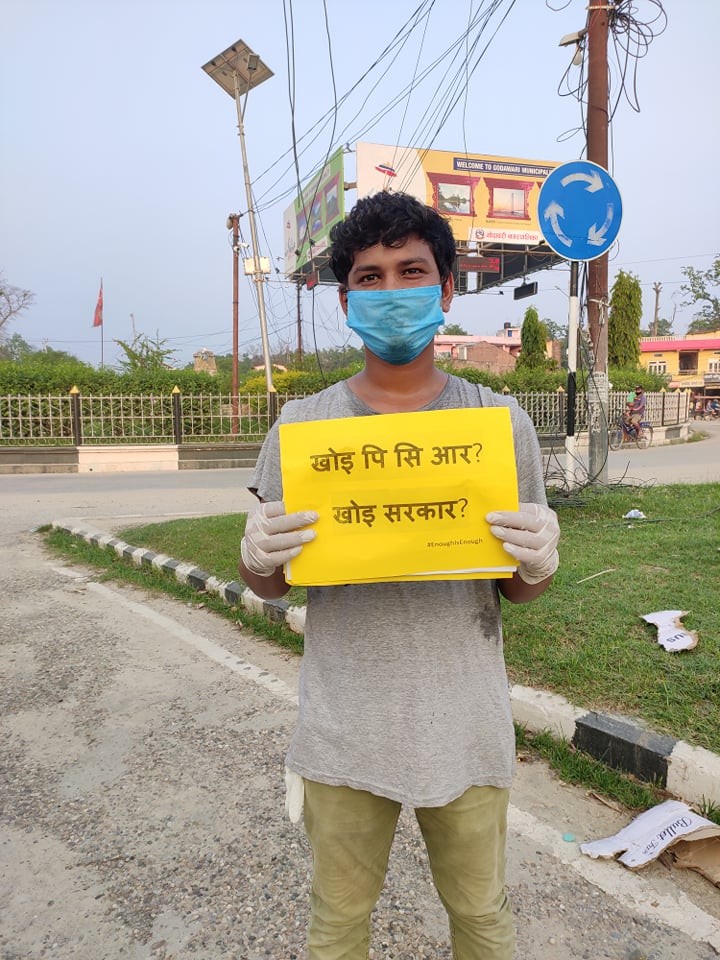 देश कोरोनाको महामारीसंग लडिरहेका बेला पछिल्लो समय देशमा भ्रष्टाचार बढेको, क्वारेन्टाईनमा बसेकाहरुको उचित ब्यबस्थापन हुन नसकेको र कोरोना परिक्षणमा भैरहेको ढिलाईप्रति सरकारको ध्यानकर्षण गराउन आफुहरु प्रर्दशनमा उत्रिएको उनको भनाई छ । उक्त गु्रपको मुख्य नारा नै विकासमा रोक पिसिआरमा जोड भन्ने रहेको छ ।